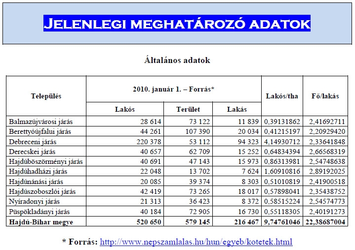 Jelenlegi meghatározó adatok